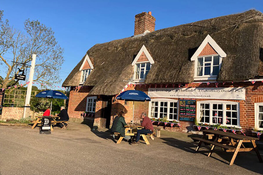 The Framsden Greyhound is a classic thatched English Country pub in a delightful village setting, housed in a grade 2 listed building in Suffolk. Today the villagers of Framsden own it, purchased by the village for the village, with the help of a Government grant from the Community Ownership Fund (COF) .'We collected the keys on March 28th 2024!